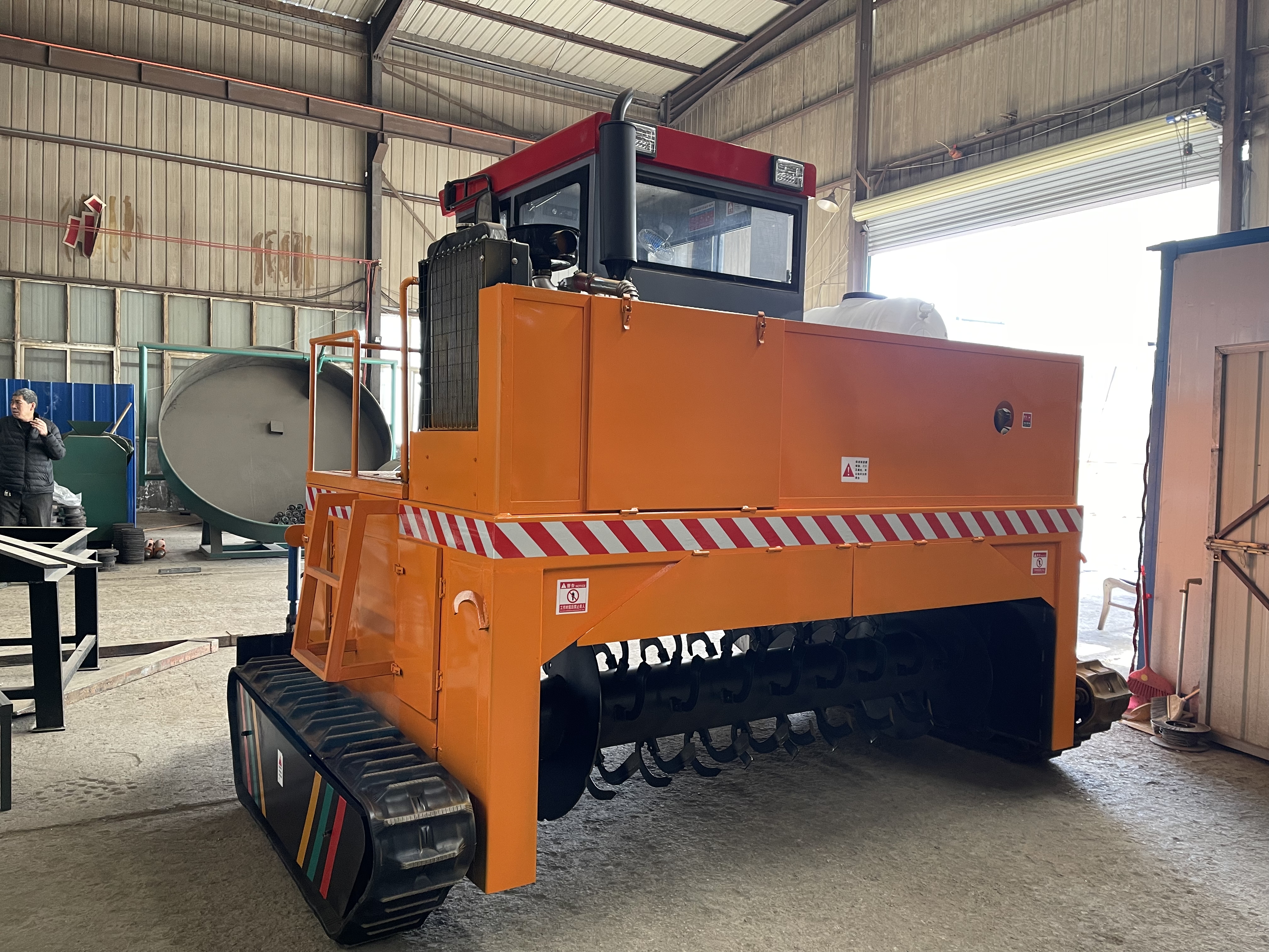 履帶式翻堆機的型號是由很多的,它采用的是地面條堆發(fā)酵生物有機肥方式,更好的將地面的垃圾,糞便等發(fā)酵翻堆。它的特點就是投資少,回報大,耗能低,成本低,效果高。它主要是應用在養(yǎng)殖場中的,像是牛場,羊場等類型的養(yǎng)殖場。它可以將物料實施攪拌、破碎,在好氧條件下進行有機物的分解,既提高發(fā)酵速度,又有效防止了發(fā)酵過程中硫化氫、胺氣等有害、惡臭氣體的產生,有利環(huán)保要求,提高肥效。它采用的是柴油機作動力,四輪行走,動力經傳動系統到達攜帶組合刀具的滾筒進行工作。質量可靠,所以說性能穩(wěn)定,操作流程簡單。