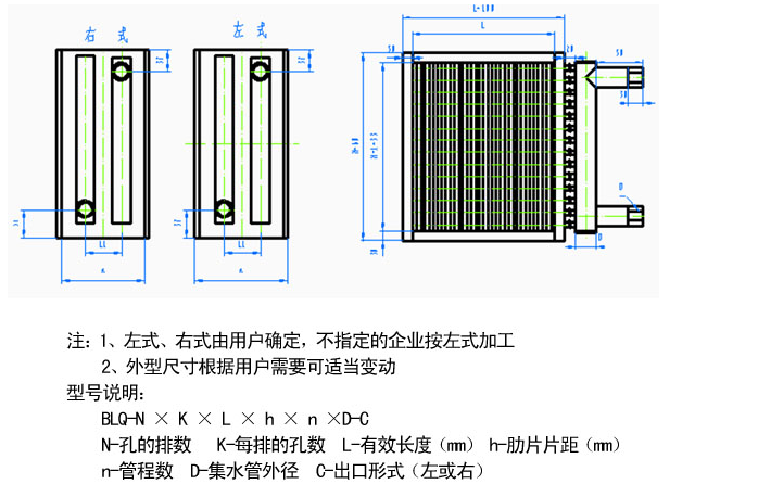 該換熱器有多樣片距(2.5-3.6毫米),規格品種齊全可滿足不同工況和各種組合的需要。